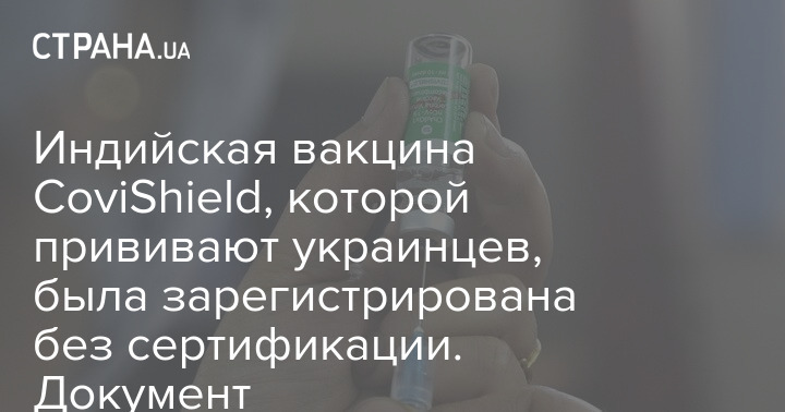 В распоряжении "Страны" оказались документы, из которых следует, что индийскую вакцину от коронавируса CoviShield в Украине зарегистрировали без прохождения специальной сертификации.