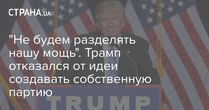 "Мы не создаем новых партий и не будем разделять нашу мощь и нашу силу. Вместо этого мы будем едиными и сильными, как никогда раньше", - говорится в тексте речи Трампа.