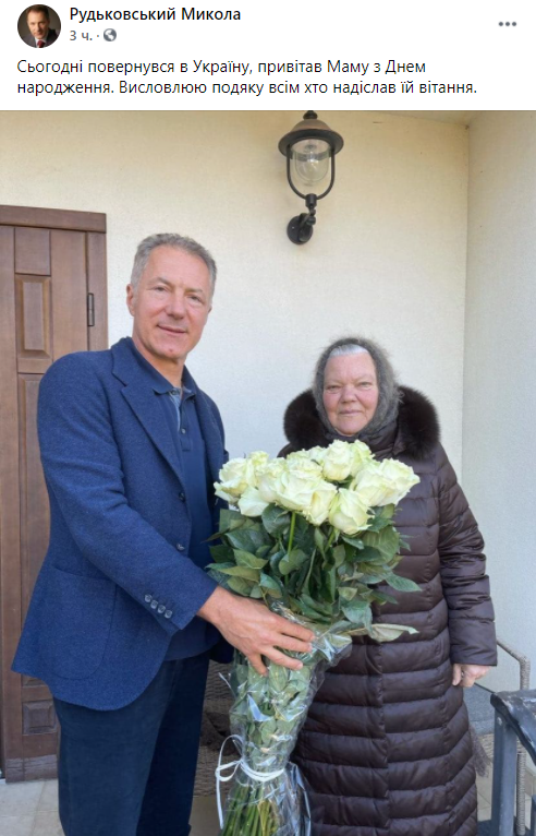 Сегодня же, после возвращения с отдыха, Рудьковский опубликовал фото со своей мамой, но факт получения "пидозры" не прокомментировал.