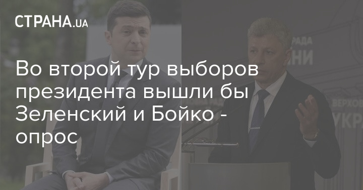 Если бы выборы президента состоялись в ближайшее время, то во второй тур голосования вышли бы действующий глава государства Владимир Зеленский и сопредседатель фракции "Оппозиционная платформа - За жизнь" Юрий Бойко.