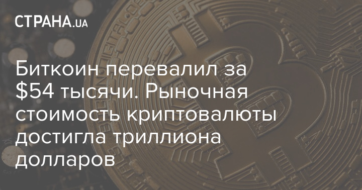 За минувшие сутки курс биткоин вырос на 7,46%, достигнув отметки в 54 310 тысячи долларов. В связи с тем, что котировки наиболее известной в мире криптовалюты восстановили свой рост, ее капитализация второй раз в истории превысила отметку в триллион долларов.