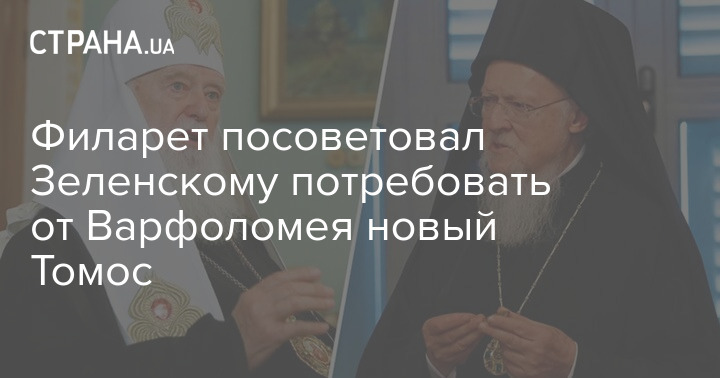 Филарет просит Зеленского поставить перед Варфоломеем вопрос о предоставлении Томоса УПЦ КП. Скриншот: Филарет