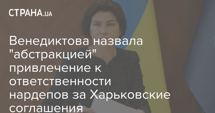 Генеральный прокурор Украины Ирина Венедиктова придерживается мнения, что вопрос о персональной ответственности депутатов, которые 11 лет назад подписали Харьковские соглашения преждевременный, и за волеизъявление народных избранников нельзя привлечь к ответственности.