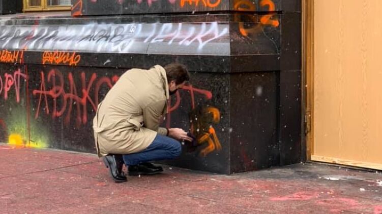 Свастику со здания Офиса президента, оставленную там после митинга в поддержку радикала Сергея Стерненко, отмыли не киевские коммунальщики, а местный житель, политолог, бывший кандидат в народные депутаты от "Голоса" (номер 27 в списке) Николай Давыдюк.