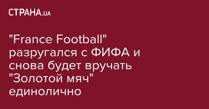 "France Football" разругался с ФИФА и снова будет вручать "Золотой мяч" единолично