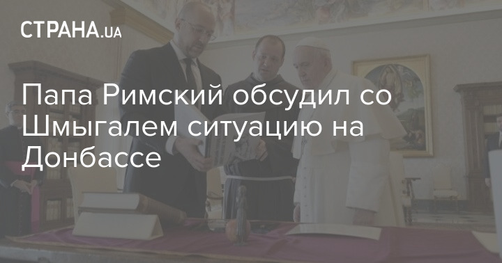 В четверг, 25 марта, 25 Папа Римский Франциск встретился в частной аудиенции в Апостольском дворце Ватикана с премьер-министром Украины Денисом Шмыгалем. Стороны обсудили ситуацию на Донбассе, кризис в системе здравоохранения и отношения в контексте деятельности Римско-католической церкви на территории республики.