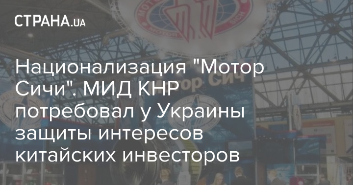 МИД Китая принял к сведению заявления украинских властей о возвращении "Мотор Сичи" в государственную собственность и при этом требует защитить интересы китайских компаний и инвесторов.