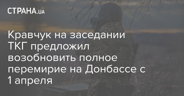 Глава украинской делегации в Трехсторонней контактной группе Леонид Кравчук начал сегодняшнее заседание ТКГ с предложение возобновить всеобъемлющее прекращение огня на Донбассе с 00:00 1 апреля.