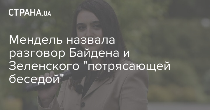 Пресс-секретарь президента Украины Юлия Мендель назвала потрясающим телефонный разговор главы США Джо Байдена и Владимира Зеленского. Свою оценку беседы лидеров двух государств она опубликовала в своем микроблоге в Твиттере.