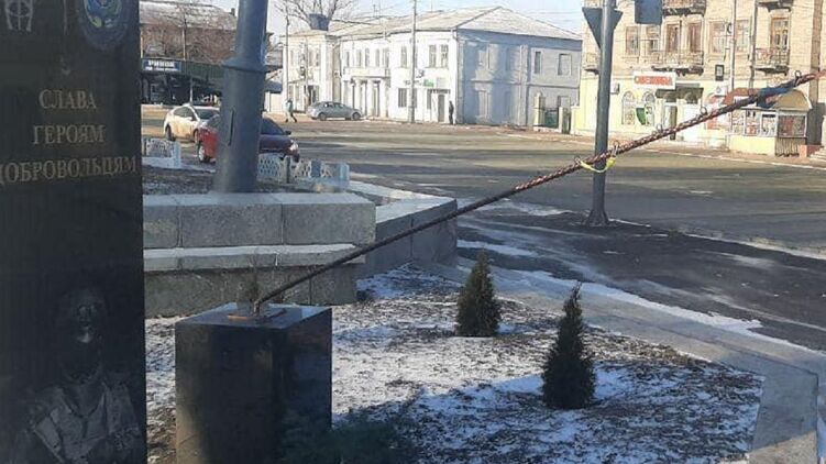 А в январе в Умани была повреждена мемориальная стена воинам антитеррористической операции.