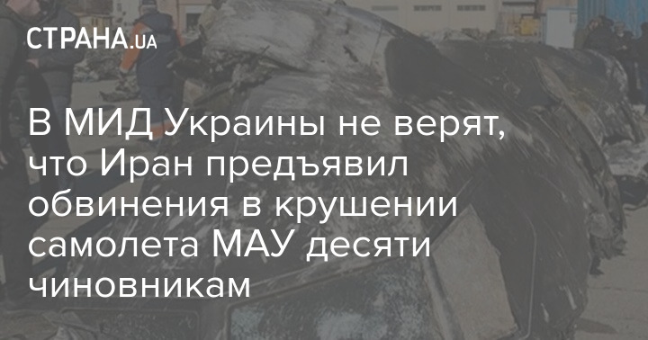В МИД Украины сомневается в правдивости сообщений о том, что Иран предъявил десяти чиновникам обвинения в причастности к крушению самолета МАУ, который в январе 2020-го был сбит ракетой под Тегераном сразу после взлета.  Такие сомнения высказал заместитель министра иностранных дел Украины Евгений Енин в эфире телеканала Украина 24.