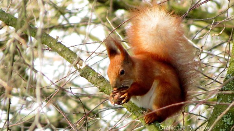 В Чернобыльском радиационно-экологическом биосферном заповеднике показали фотографии огненно-рыжей деловитой белки и рассказали, как много забот у нее в весенний период.
