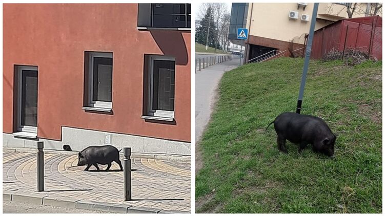 В Виннице гуляющая по центру города молодая вьетнамская свинья стала звездой соцсетей.