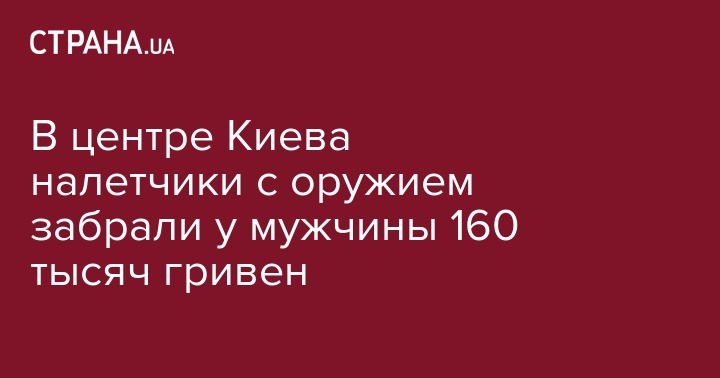 В Шевченковском районе столицы трое неизвестных, угрожая оружием, забрали у мужчины 160 тысяч гривен. Об этом сообщает Еспресо.TV.