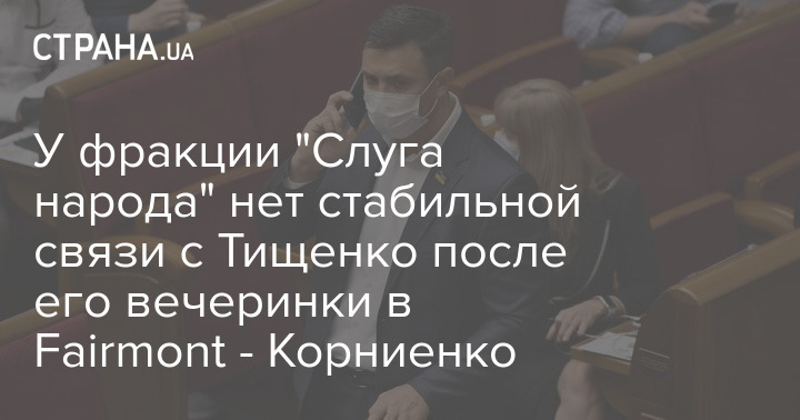Во фракции "Слуга народа" не успели "существенно пообщаться" с нардепом Николаем Тищенко, который закатил вечеринку в столичном отеле Fairmont во время карантина.