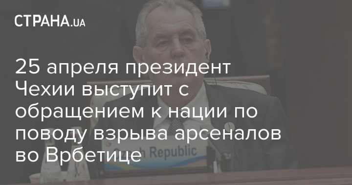"Милош Земан выступит в воскресенье, 25 апреля 2021 года, в 11:00 (12:00 по Киеву - Ред.) с внеочередной речью, которая будет транслироваться на TV Prima и CNN Prima News", - говорится в сообщении.