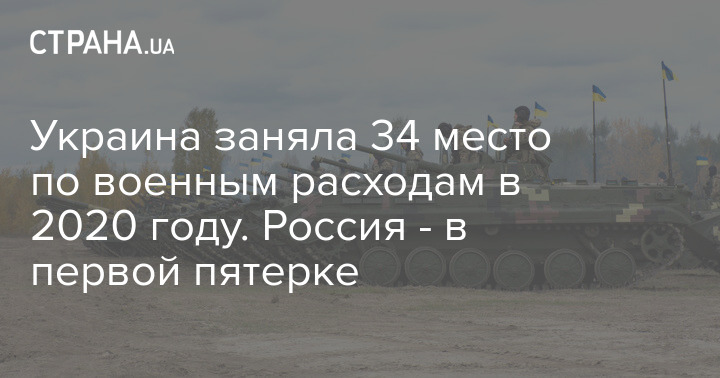 Украина заняла 34 место по военным расходам за прошлый год. Россия - в первой пятерке. Скриншот