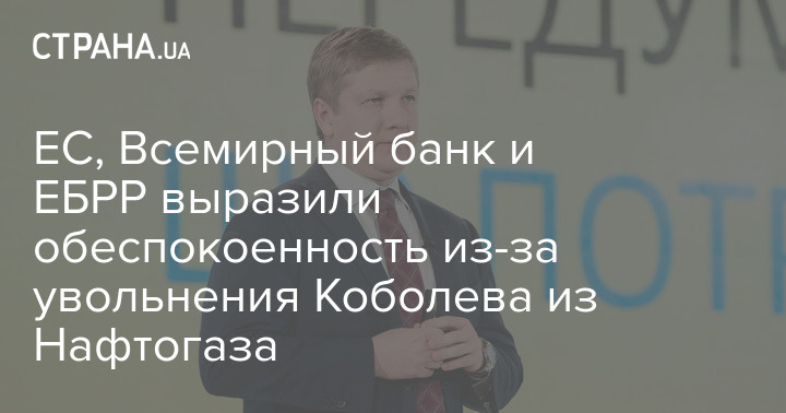 Европейский союз, Европейский банк реконструкции и развития, Европейский инвестиционный банк, Всемирный банк и Международная финансовая корпорация выразили обеспокоенность из-за увольнения главы правления НАК "Нафтогаз" Андрея Коболева и назначения вместого него Юрия Витренко.