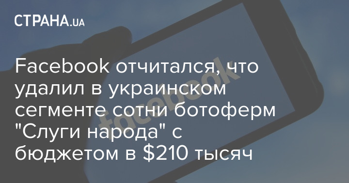 Американская социальная сеть Facebook подготовила отчет за апрель 2021 года о спланированном продвижении дезинформации (СПД). В разделе документа, посвященном Украине, говорится, что с помощью ФБР были закрыты сотни ботоферм, связанных с партией "Слуга народа".