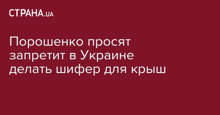 На официальном сайте Президента Украины зарегистрирована электронная петиция, в которой Петра Порошенко просят запретить производство шифера из асбеста из-за риска заболевания раком. Такое обращение можно увидеть на официальном сайте электронных петиций.