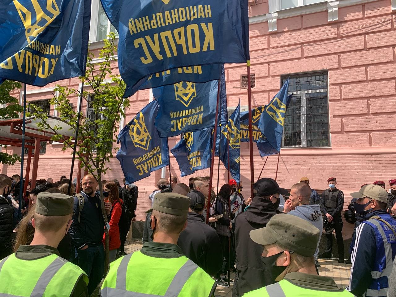 14:00  Под Печерский суд, где избирают меру пресечения Медведчуку, пришел Нацкорпус. Также здесь очень много полиции и Нацгвардии.