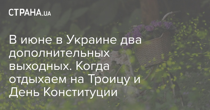 В июне украинцев ждут сразу два дополнительных выходных - на Троицу и День Конституции. Это официальные выходные дни в стране. Всего в июне будет 20 рабочих и 10 нерабочих дней.