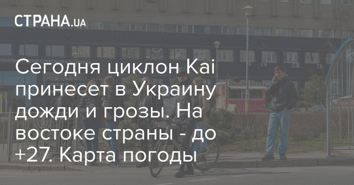 Сегодня циклон Кai принесет в Украину дожди и грозы. На востоке страны - до +27. Карта погоды