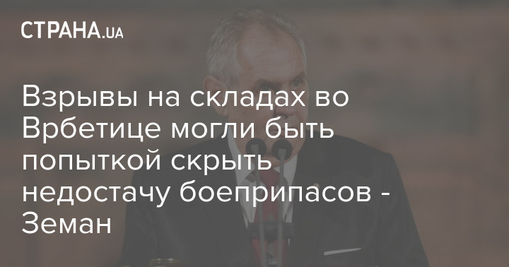 Чешский президент Милош Земан рассказал о ходе расследования взрывов на арсеналах во Врбетице в 2014 году. По его словам, одной из версий может быть попытка скрыть нехватку оружия.