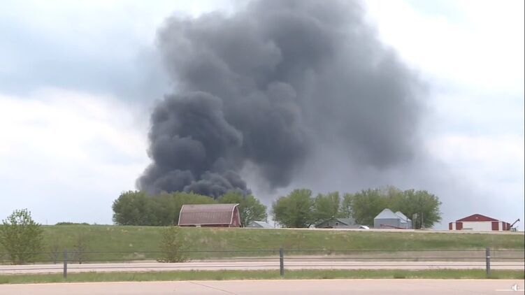 В результате железнодорожной аварии в воздух поднялся густой черный дым. Учитывая сильный ветер, возникла угроза распространения огня на ближайшие территории. Местные власти приняли решение эвакуировать часть населения в пределах 8 километров от места крушения.
