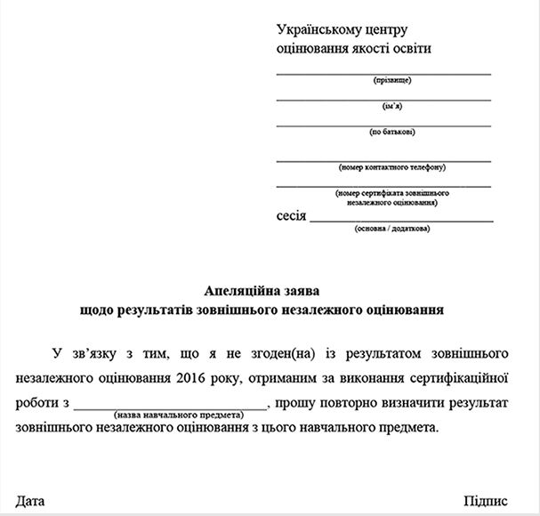 Если участник ВНО не согласен с баллами по тестированию, он может подать апелляцию в течение пяти календарных дней со дня объявления результатов. Заявление об апелляции отправляют в Украинский центр оценивания качества образования - заказным письмом (по адресу Киев, 04053, ул. Владимира Винниченко 5, с пометкой "Апелляционная комиссия УЦОКО") или на email: zno_info@testportal.gov.ua.
