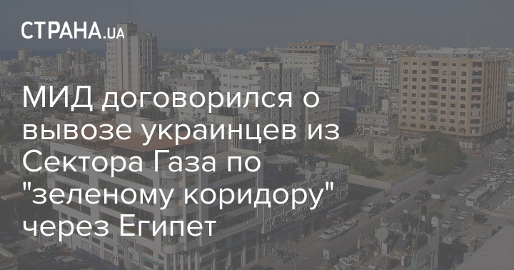 Украинские власти договорились организовать "зеленый коридор" для эвакуации граждан Украины, которые находятся в Секторе Газа. Их будут вывозить через Египет на специальных авиарейсах.