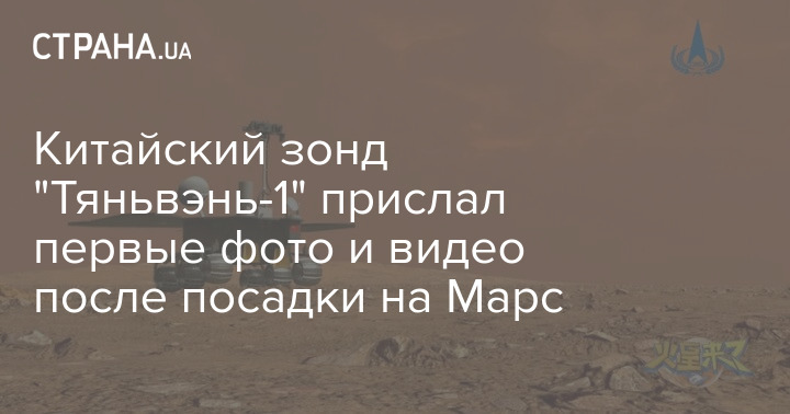 Китайское национальное космическое управление (CNSA) опубликовало два снимка и видеозапись, снятые зондом "Тяньвэнь-1". Видео сделано в начале процесса посадки, а фото - уже на поверхности Красной планеты.