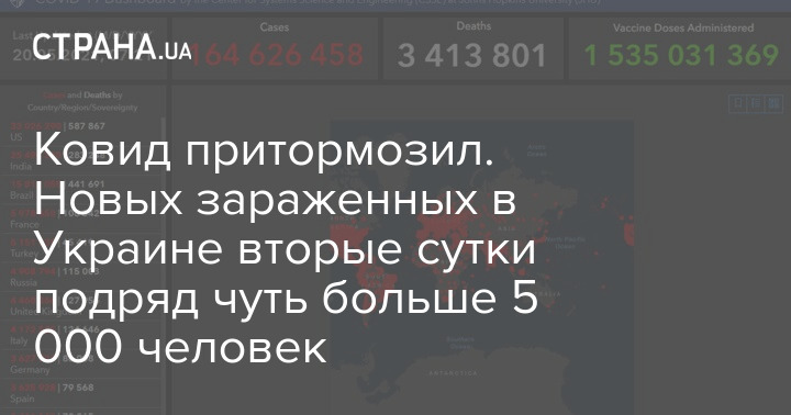 Ковид притормозил. Новых зараженных в Украине вторые сутки подряд чуть больше 5 000 человек