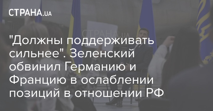 Президент Украины Владимир Зеленский заявил, что Франция и Германии ослабляют свои позиции по отношению к РФ. По его мнению, они должны поддерживать Украину сильнее.