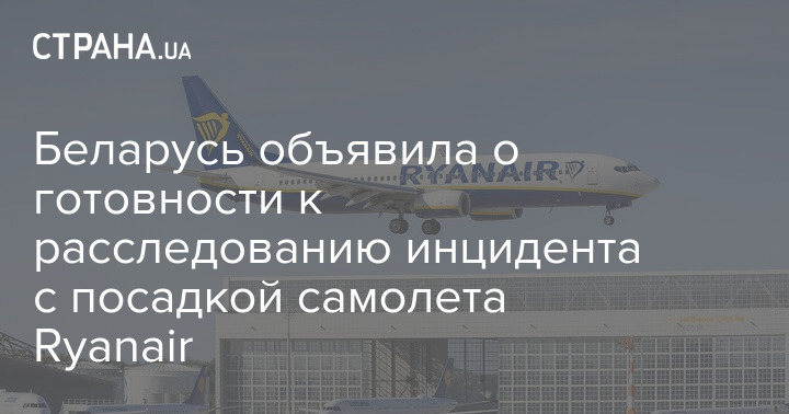 Беларусь заявила о готовности расследовать инцидент с экстренной посадкой в Минске самолета Ryanair сообщением Афины - Вильнюс и уведомила об этом Международную организацию гражданской авиации (ICAO) и Международную ассоциацию воздушного транспорта (IATA).
