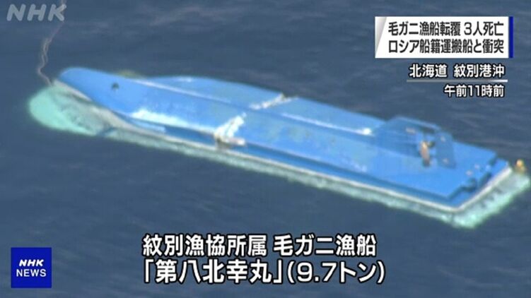 После столкновения с кораблем России в Охотском море перевернулось японское судно. Три человека погибли, фото