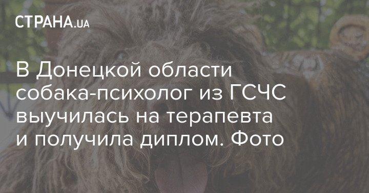 Испанская водная собака по кличке Банана вместе с психологом Госслужбы по чрезвычайным ситуациям в Донецкой области получила диплом терапевта по итогам специального обучения.