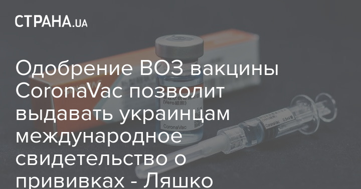 Одобрение ВОЗ вакцины CoronaVac позволит выдавать украинцам международное свидетельство о прививках - Ляшко