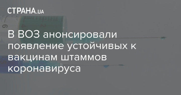 Во Всемирной организации здравоохранения считают, что в мире появятся штаммы коронавируса, устойчивые к существующим вакцинам.