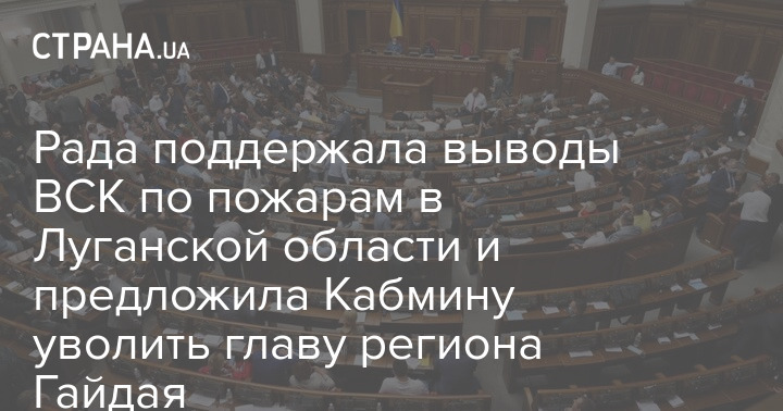 В ходе заседания в четверг, 3 июня, Верховная Рада поддержала выводы Временной следственной комиссии по прошлогодним пожарам в Луганской области и предложила президенту и Кабмину уволить главу Военно-гражданской администрации региона Сергея Гайдая.