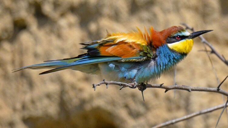 Сотрудники Чернобыльского радиационно-экологического биосферного заповедника рассказали о птице, чей наряд напоминает ярких обитателей тропиков, а глаза имеют алый оттенок. Это золотистая щурка, которая охотится на пчел, ос и шмелей.