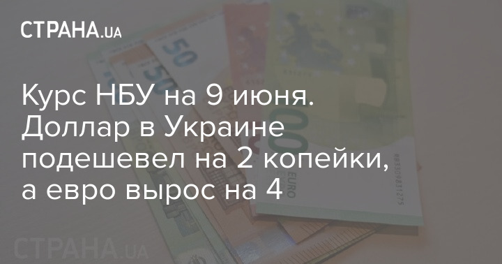 Национальный банк Украины (НБУ) в среду, 9 июня, установил официальный курс гривны по отношению к иностранным валютам. По сравнению с предыдущим рабочим днем доллар подешевел, а евро подорожал.