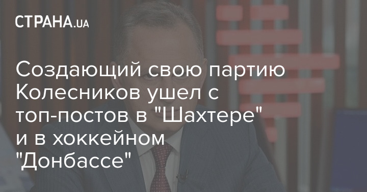 Создающий свою партию Колесников ушел с топ-постов в "Шахтере" и в хоккейном "Донбассе"