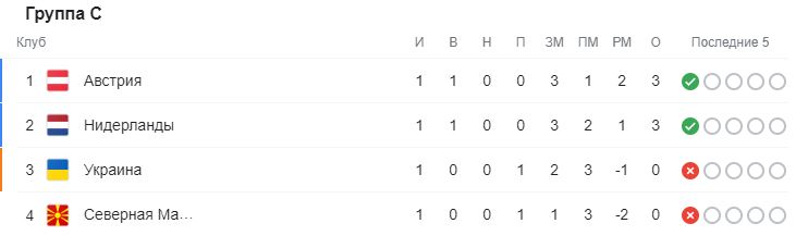 Украина играет в группе С. После первых матчей первую строчку заняла сборная Австрии, одолевшая сборную Северной Македонии со счетом 3:1. На втором месте сборная Нидерландов, обыгравшая Украину со счетом 3:2 в прошлом матче.