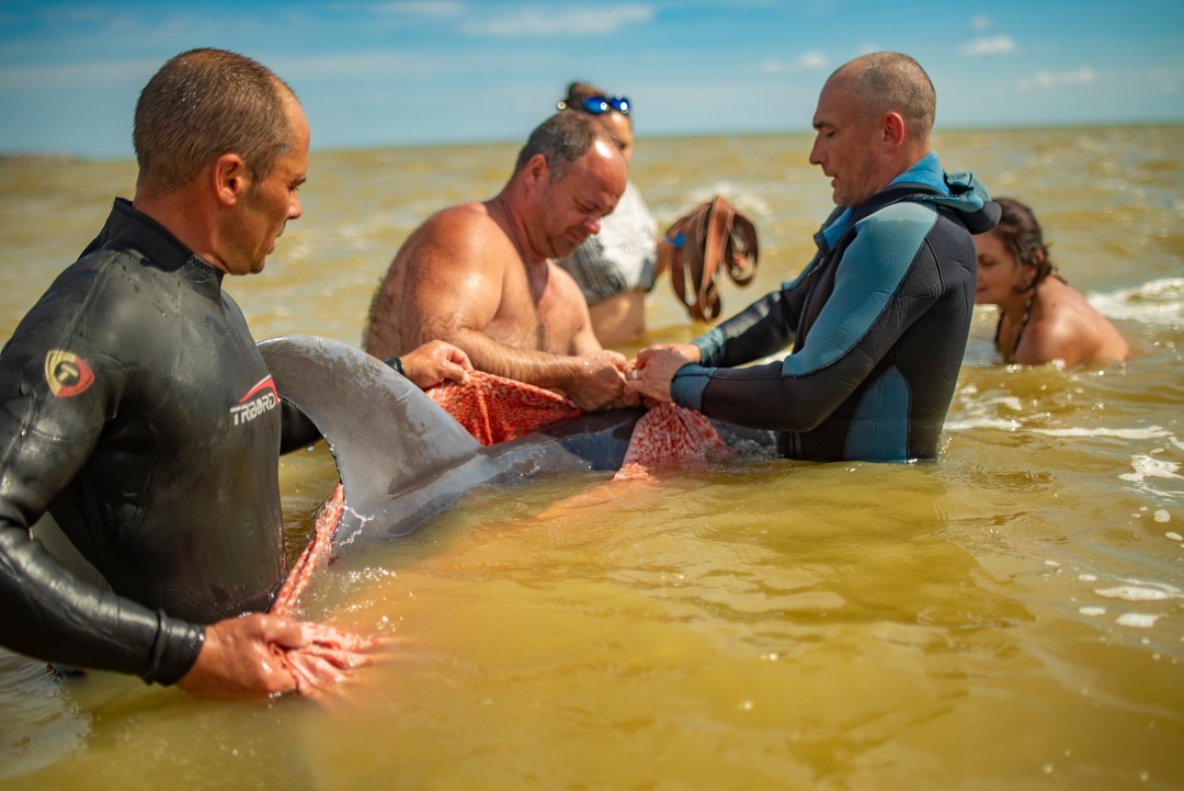 Под Херсоном спасли обессиленного дельфина, которого выбросило штормом на мель. Фото и видео