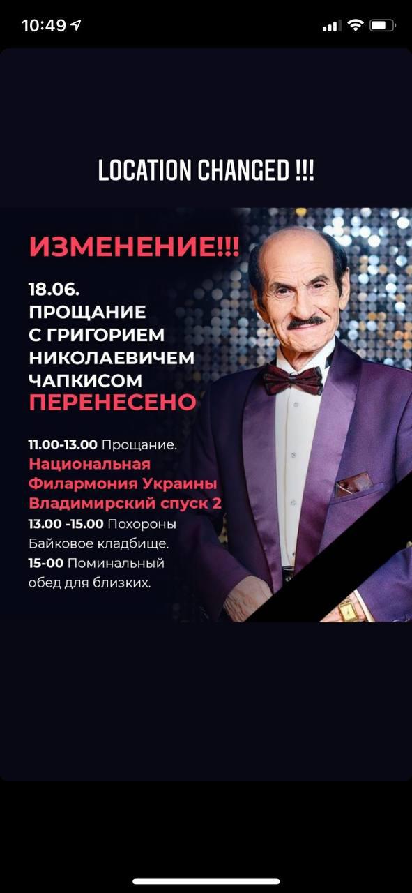 12:10 На похоронах Чапкиса все желающие могут оставить воспоминания и соболезнования в "Книге о жизни талантливых людей". Такая услуга на прощальной церемонии в Украине используется впервые. Оригинал этой книги остается у родственников Чапкиса. На ее основе потом может быть издана публичная книга.