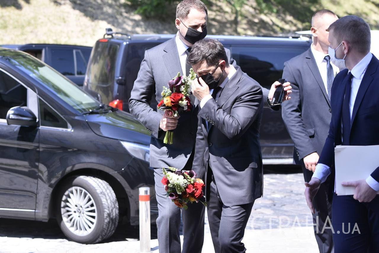 11:45 Владимир Зеленский подошел к родственникам. выразил свои соболезнования. Пробыл недолго и буквально через минуту ушел.