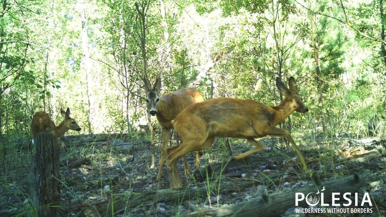 Чернобыльский радиационно-экологический биосферный заповедник опубликовал снимок лесной поляны, сделанный фотоловушкой проекта "Полесье - дикая природа без границ" в зоне отчуждения ЧАЭС. На нем запечатлены три резвящиеся косули.