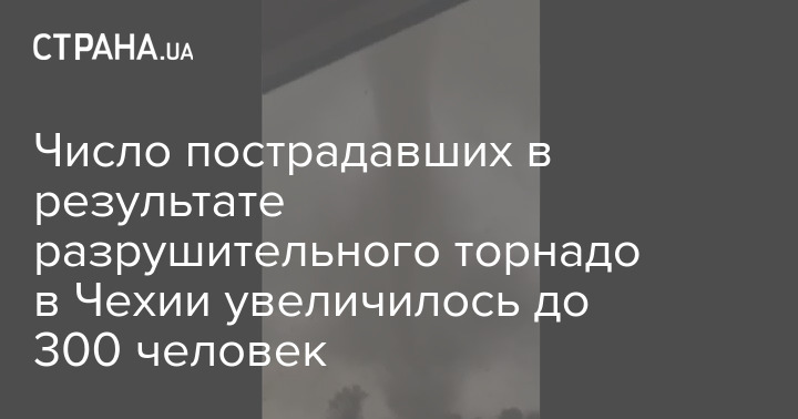 Число пострадавших в результате разрушительного торнадо в Чехии увеличилось со 150 до 300 человек. Стихия затронула семь сел и город, расположенный недалеко от границ с Австрией и Словакией.