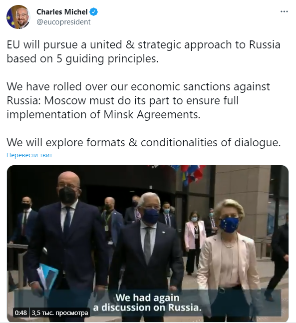 Об этом в Twitter, написал глава Евросовета Шарль Мишель.